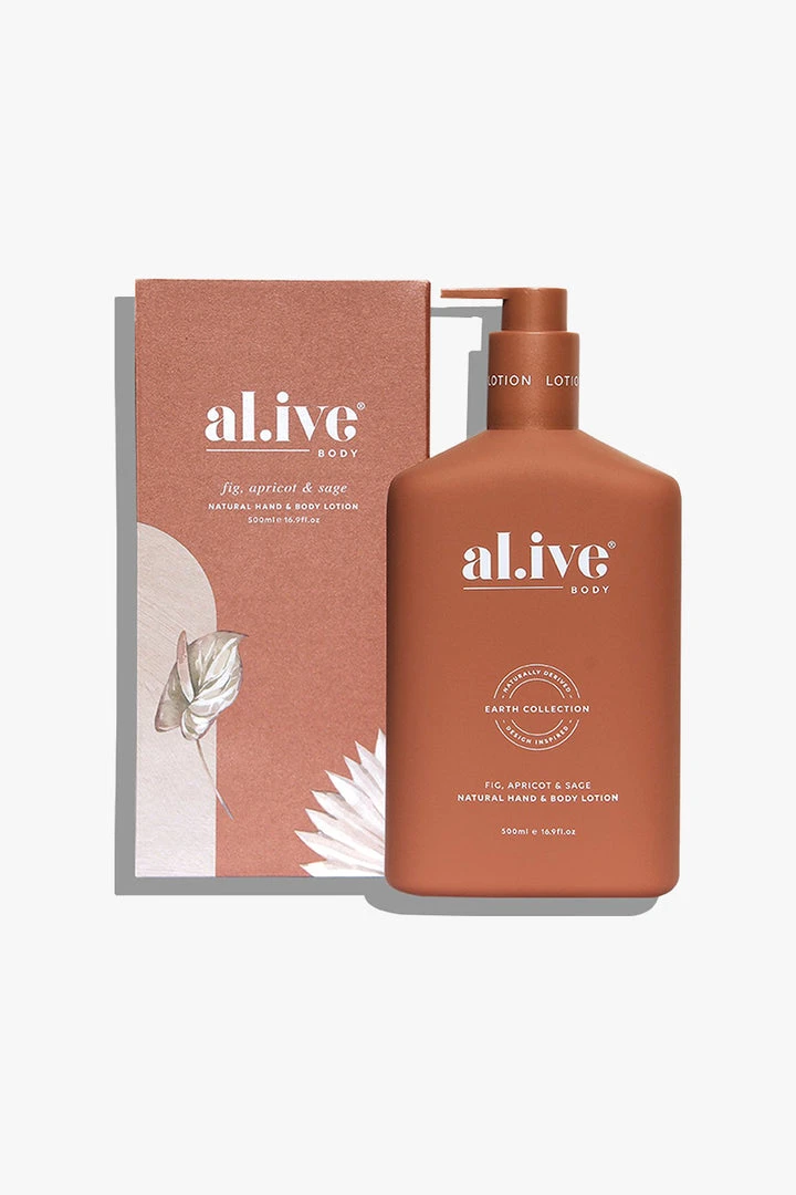 al.ive body Fig, Apricot & Sage Hand & Body Lotion contains a luxurious blend of naturally derived ingredients, fortified with essential oils and native botanical extracts.