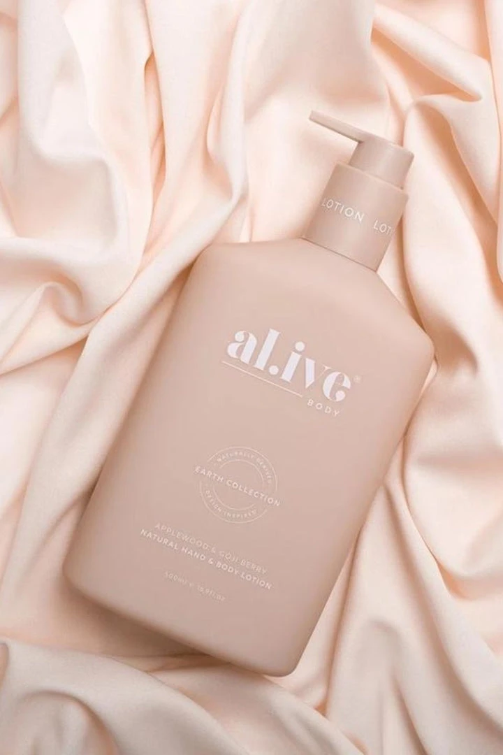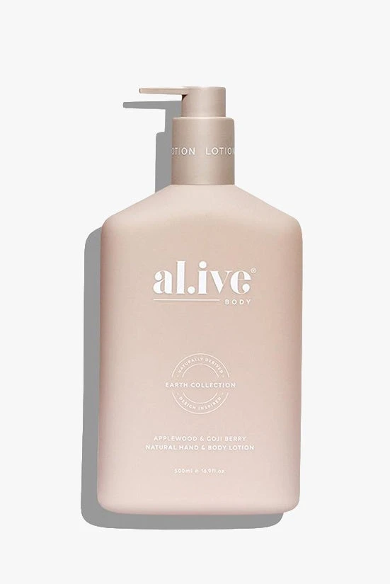 The al.ive body Applewood & Goji Berry Hand & Body Lotion contains a luxurious blend of naturally derived ingredients, fortified with essential oils and native botanical extracts.