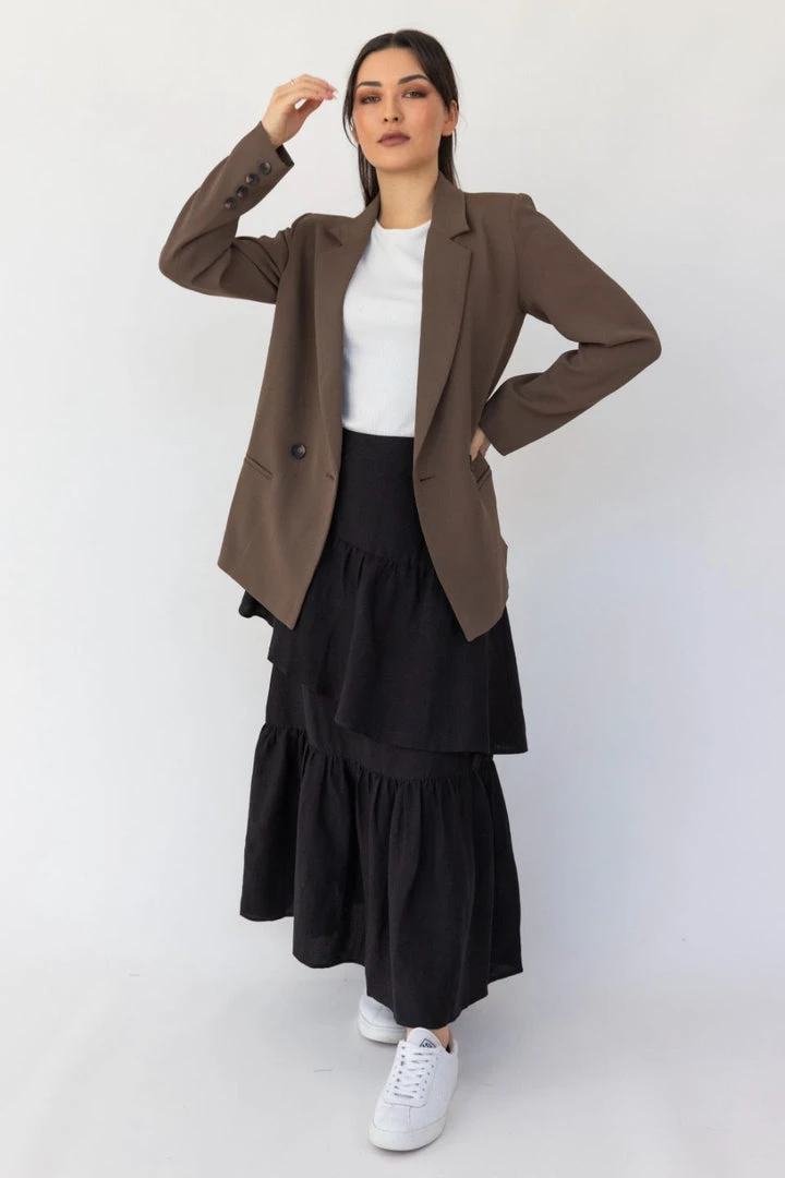 We love the Amelia tiered midi skirt, featuring a flat waist and perfectly asymmetrical tiers for a super flattering fit! For an effortless warm-weather look, wear with a cami and slides. For those cooler days, pair with boots.