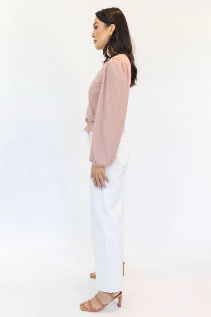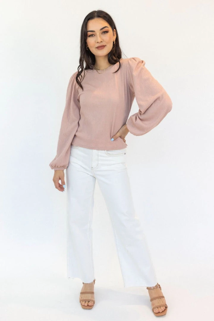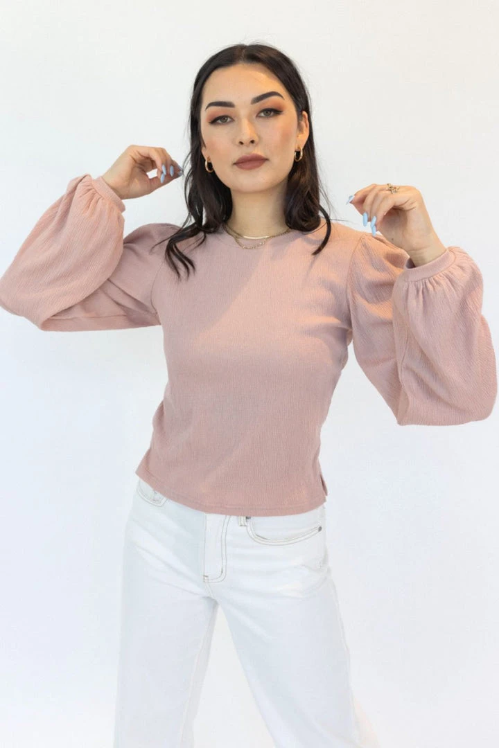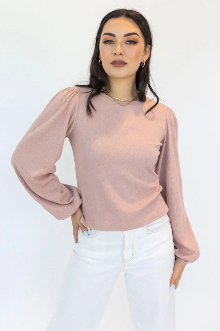 Among The Brave Annabelle Blush LS Puff Sleeve Soft Textured Knit Top Fashion