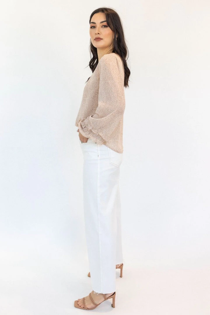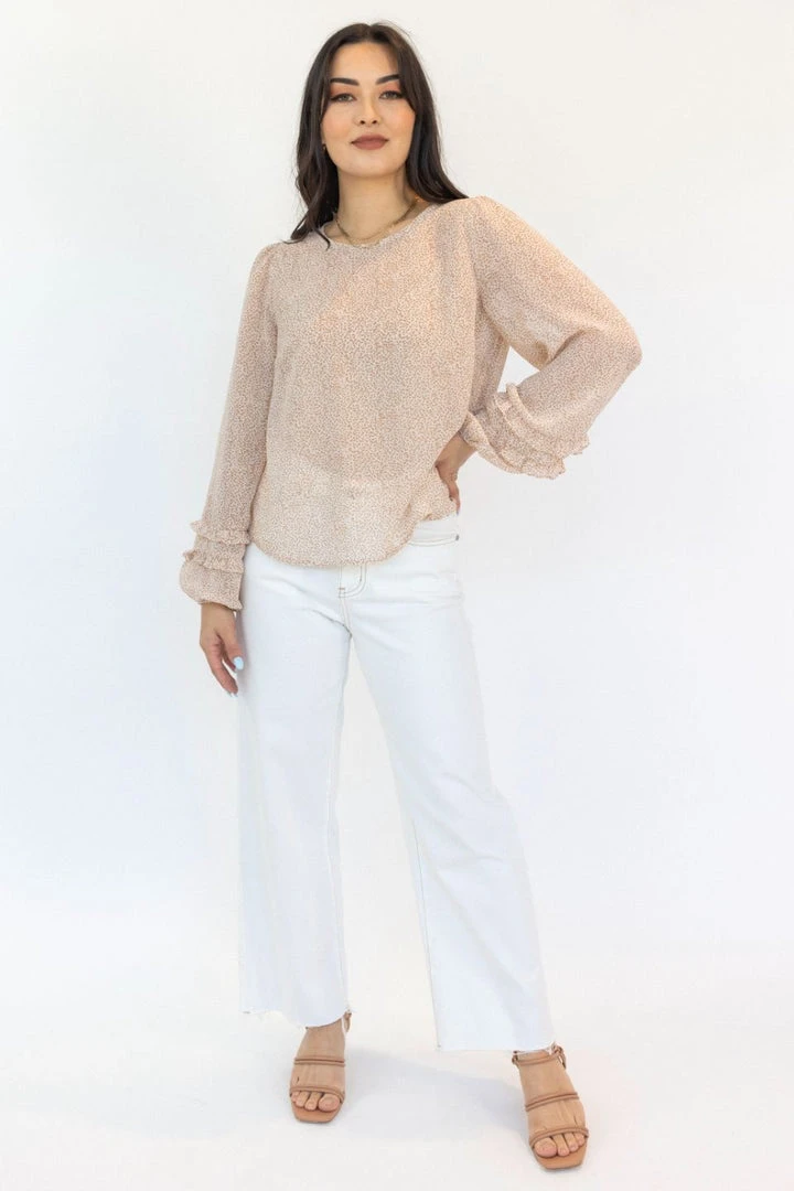 The Ava crinkle cream ditsy blouse is the perfect blouse to take you from desk to dinner. Pair this stunning blouse with black dress pants and boots for a night out or dress it down with jeans and sneakers.