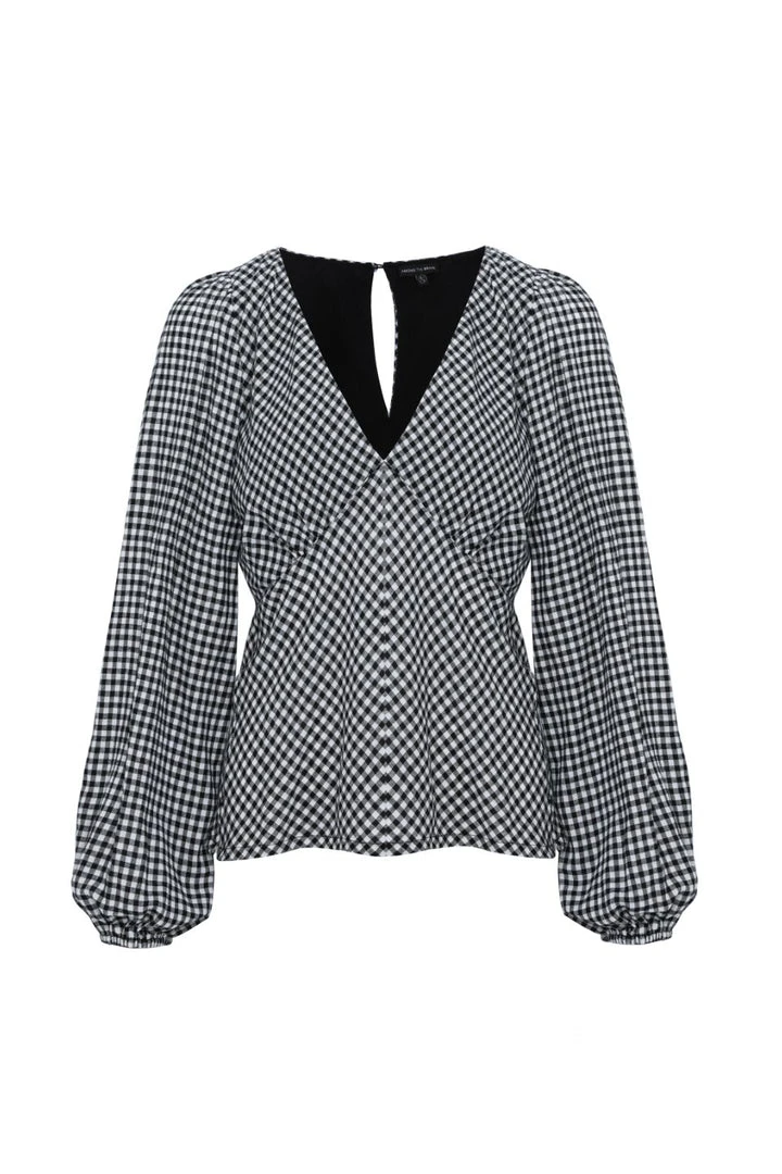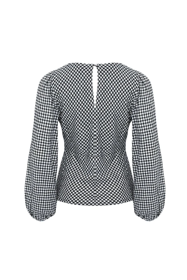 Among The Brave Bailey Black Gingham LS Balloon Sleeve Panel Bodice Bias Top Fashion
