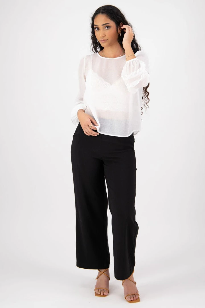 The Ava crinkle shimmer blouse is the perfect blouse to take you from desk to dinner. Pair this stunning blouse with black dress pants and boots for a night out or dress it down with jeans and sneakers.Â