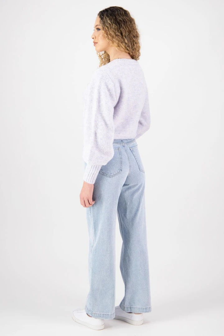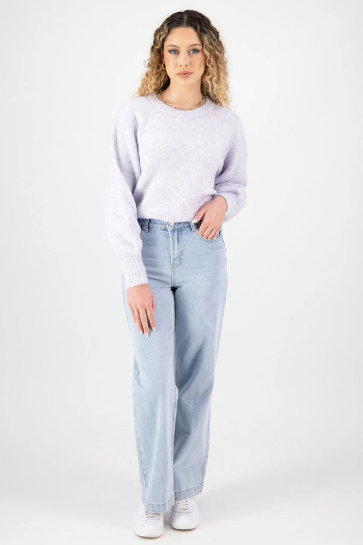 Among The Brave Fashion Good Luck Soft Lilac Balloon Sleeve Knit