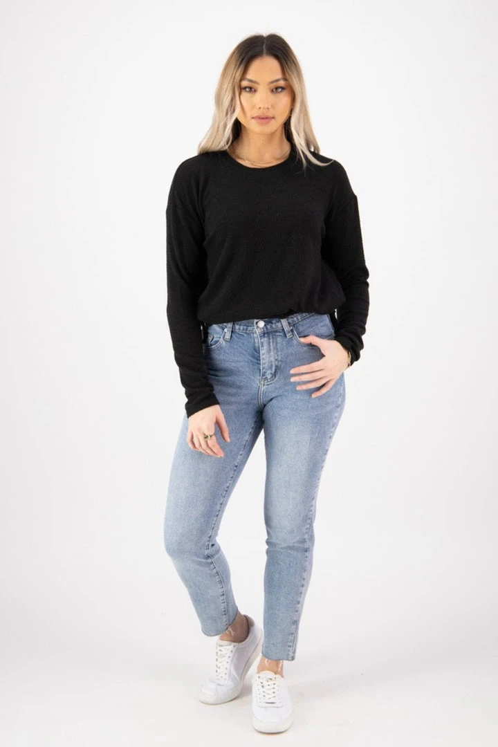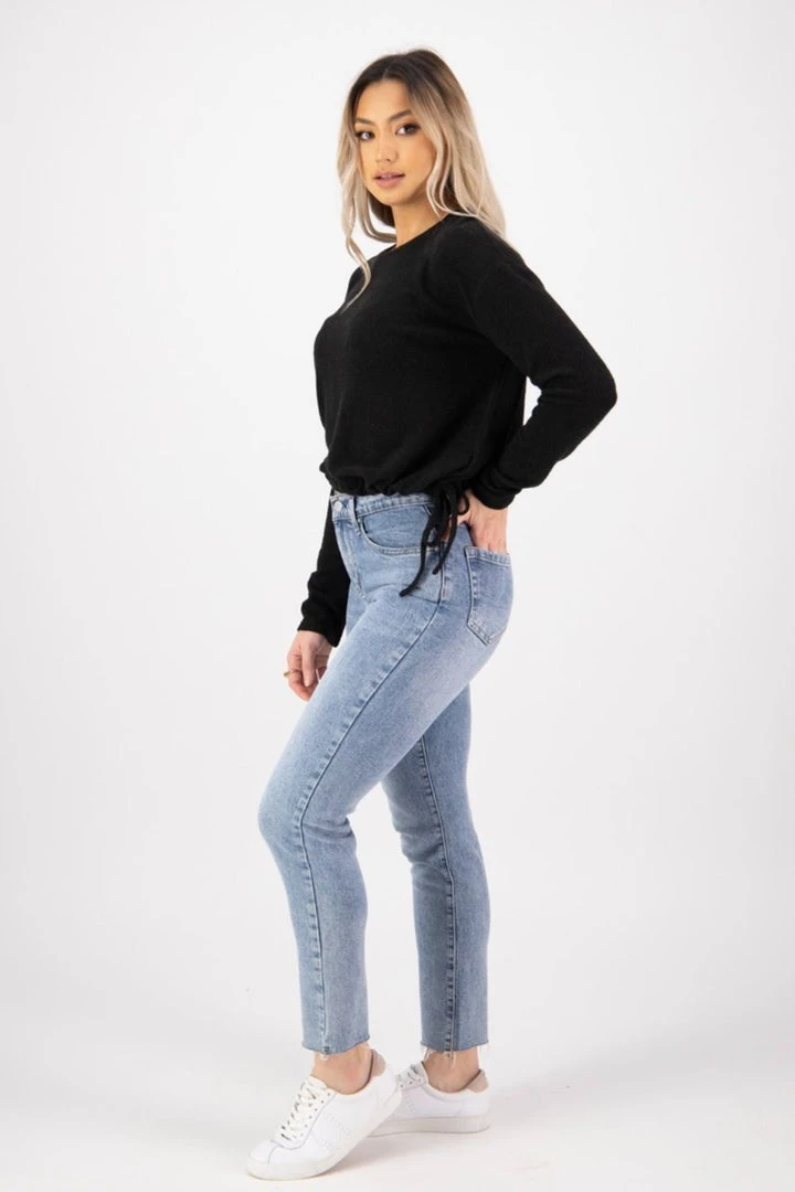Among The Brave Fashion Rylee Black Slouchy Tie Hem Soft Brushed Sweat