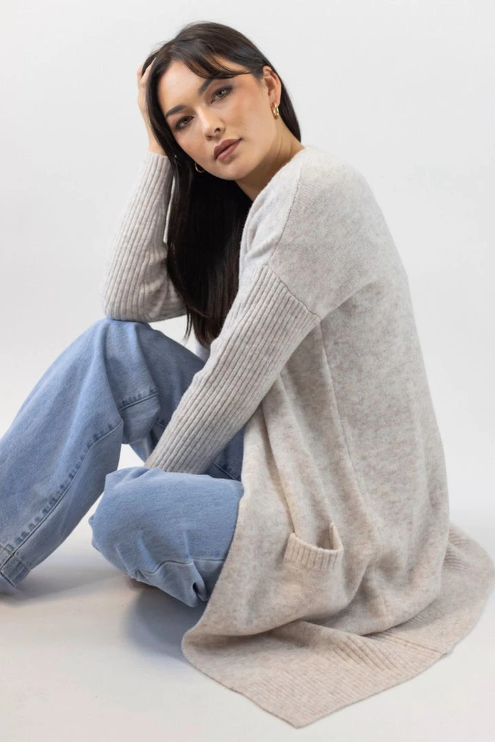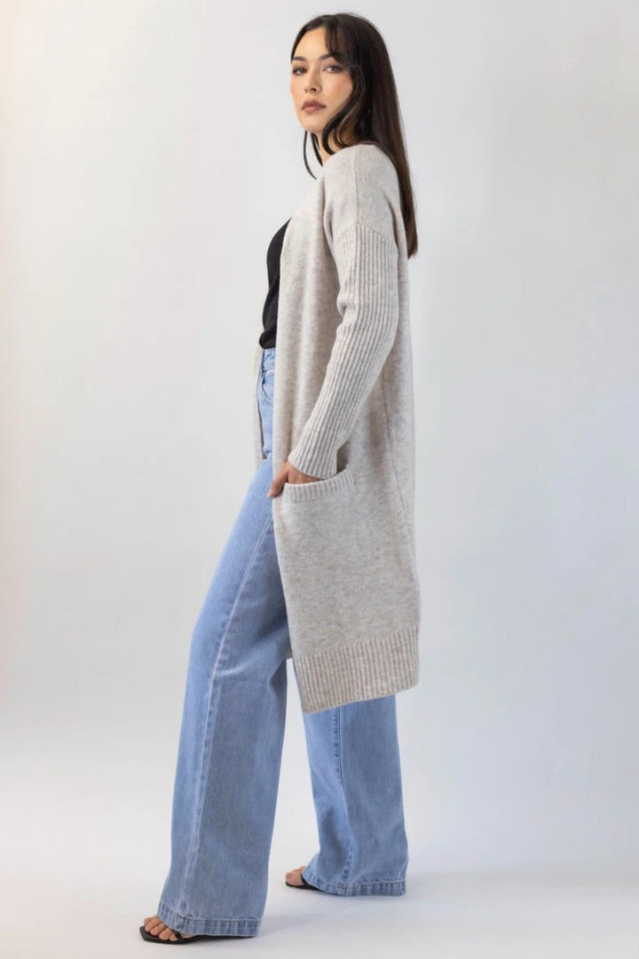 Reach peak cosiness with this stunning Secure Knit Cardigan! Made from the softest knit fabric, this long cardigan has ribbed sleeves for style and pockets for ultimate convenience.