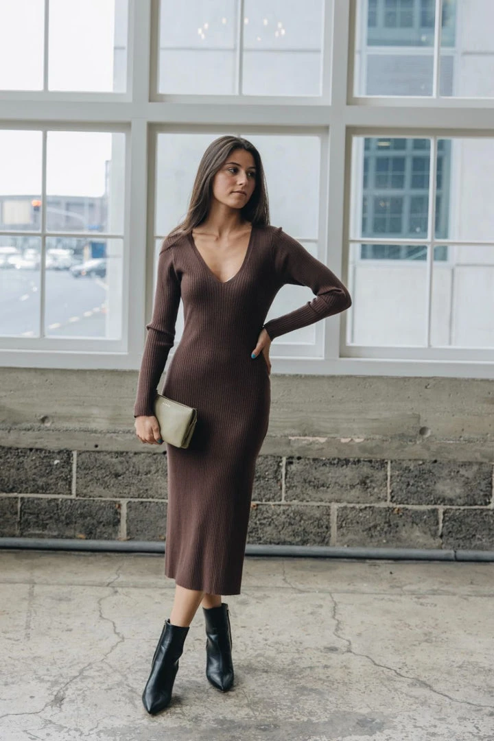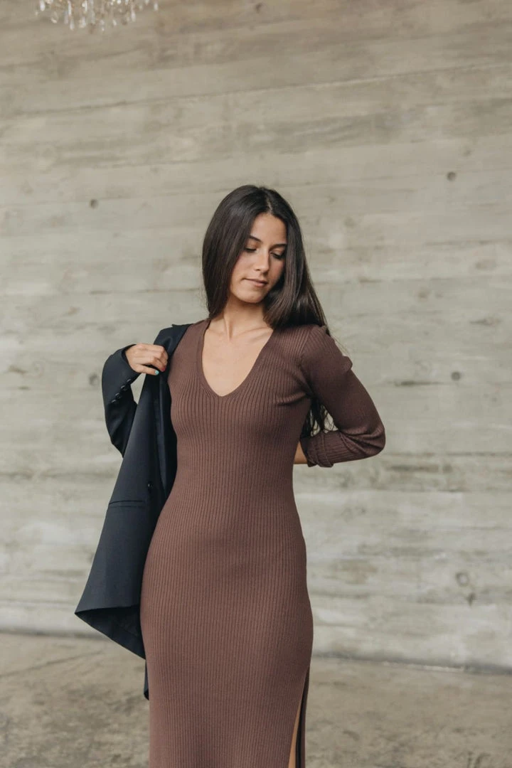 An easy and stylish throw-on-and-go dress, the Skillful Midi Dress is a wardrobe staple. Made from a soft, rib-knit fabric, this stunning dress features long sleeves, a V-neckline, and side splits and is easily dressed up or down.