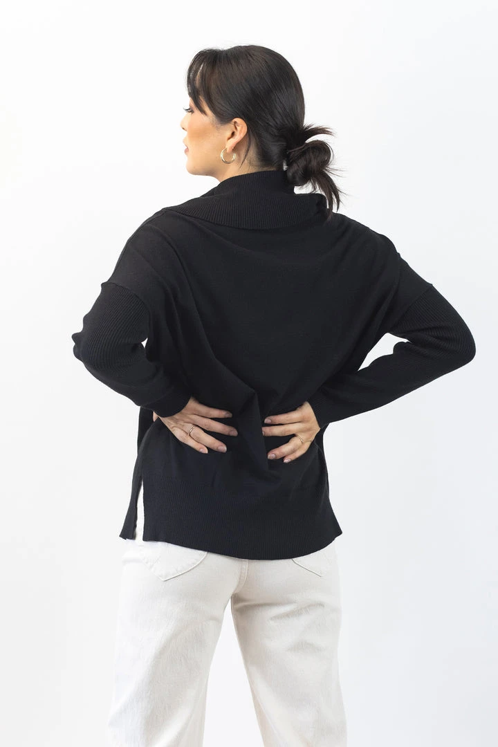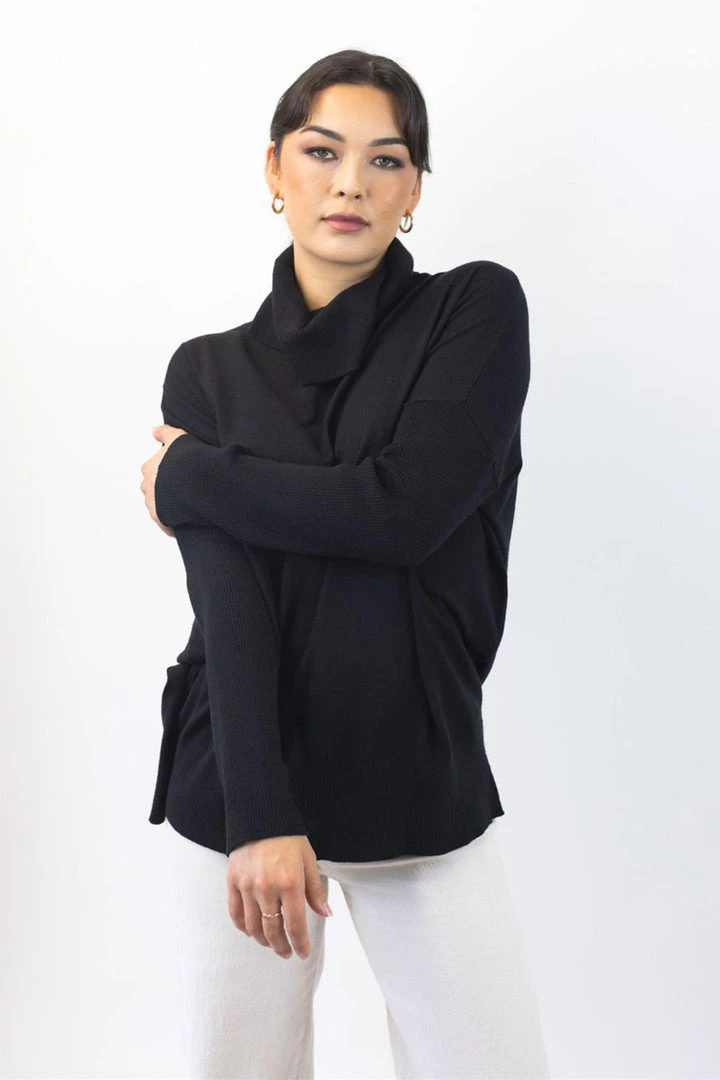 Gorgeous and stylish! This rolled neck knit will keep you toasty and warm. The Vital Jumper has a rolled ribbed neck and hemline and super soft knit fabric! Pairs perfect with pants and boots for that casual look!