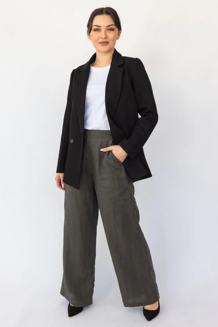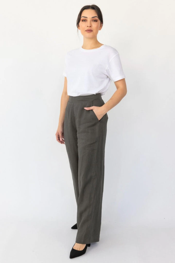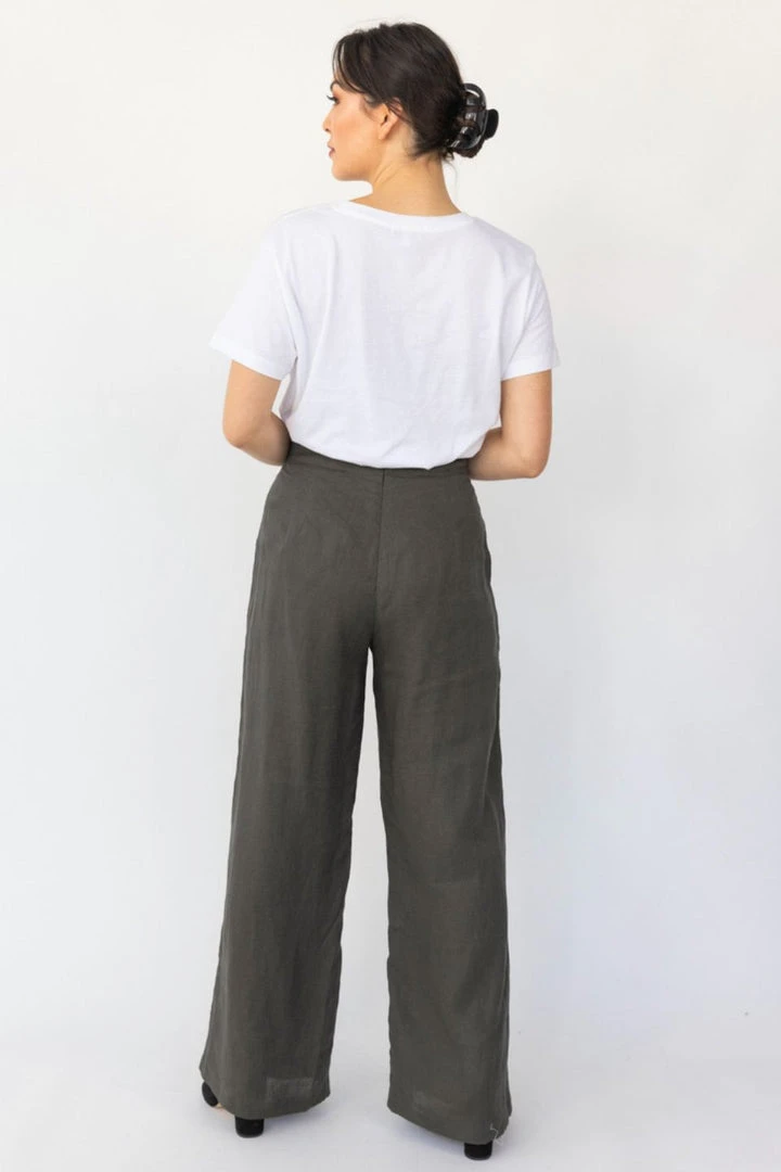 If you need some cute linen pants, look no further! These Freedom Dark Khaki Flat Front Wide Leg Linen Pants are both comfortable and stylish, comfy enough to wear around home or wear with a blouse and some loafers to work.