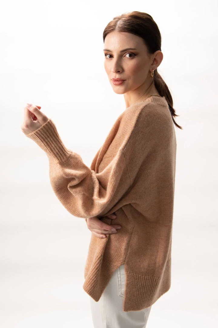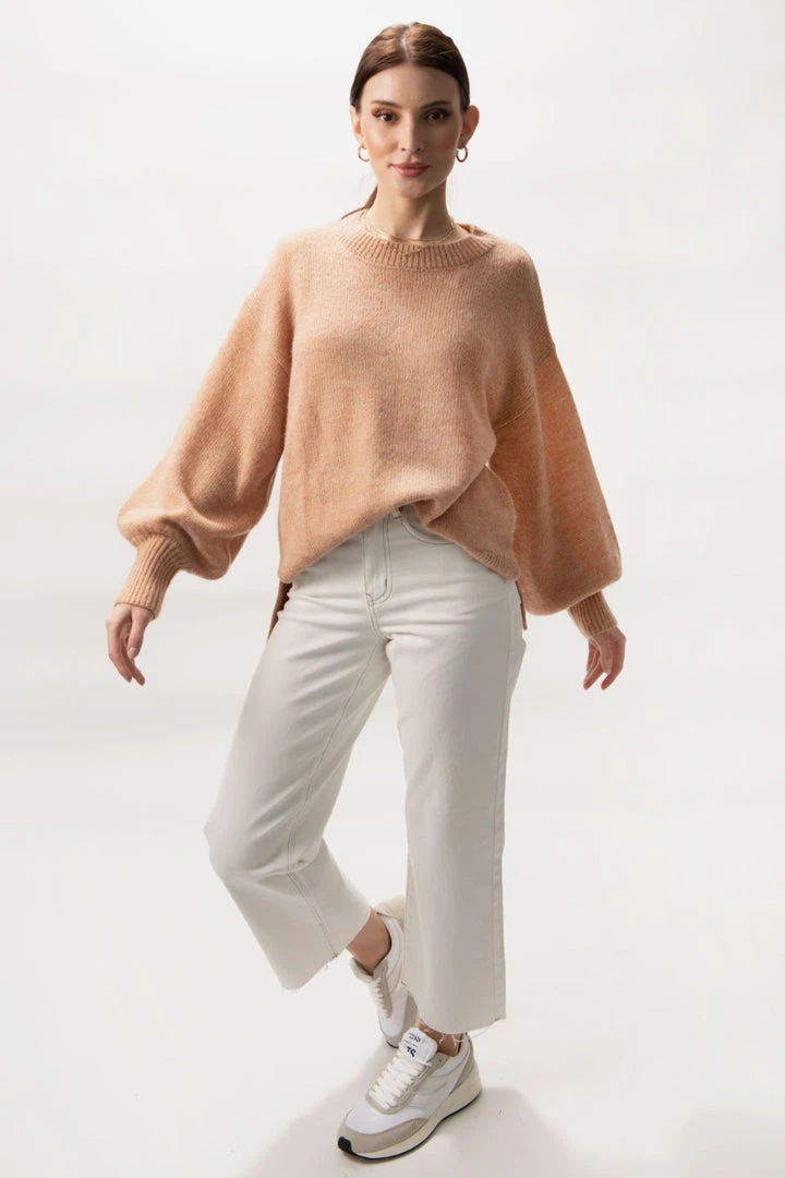 Among The Brave Inner Peace Caramel Oversized Balloon Sleeve Mohair Blend Knit