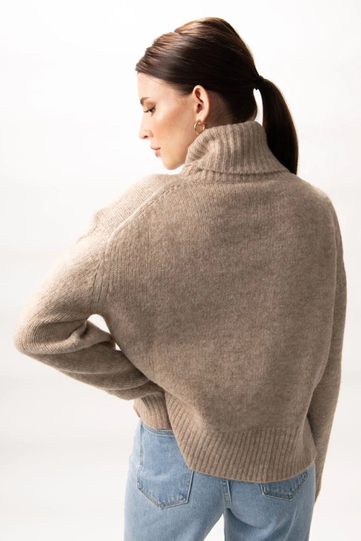 Among The Brave Soulful Mink Super Soft Cable Sleeve Raglan Cropped Roll Neck Knit Fashion