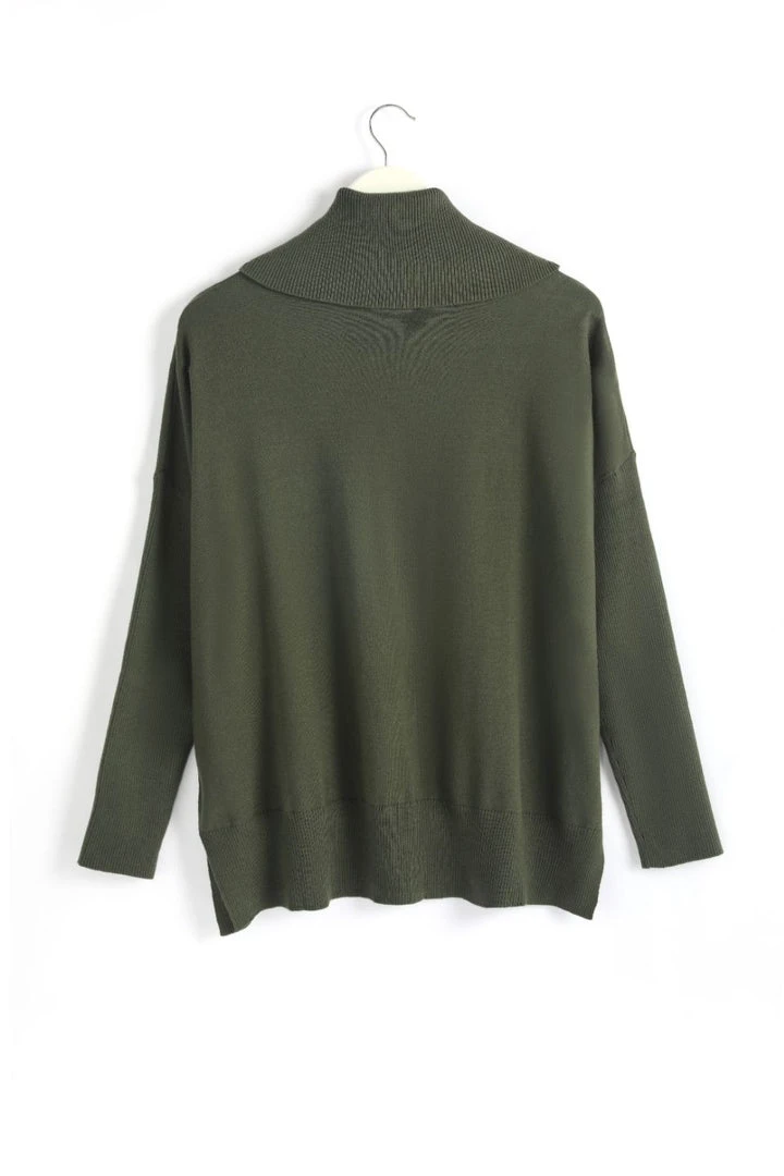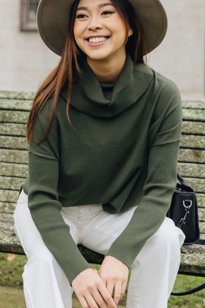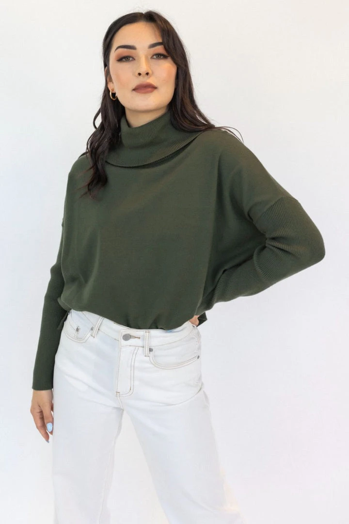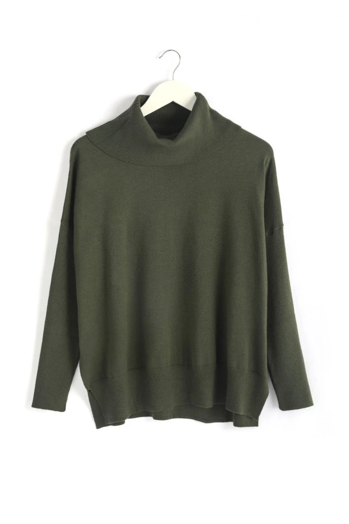 Gorgeous and stylish! This rolled neck knit will keep you toasty and warm. The Vital Jumper has a rolled ribbed neck and hemline and super soft knit fabric! Pairs perfect with pants and boots for that casual look!