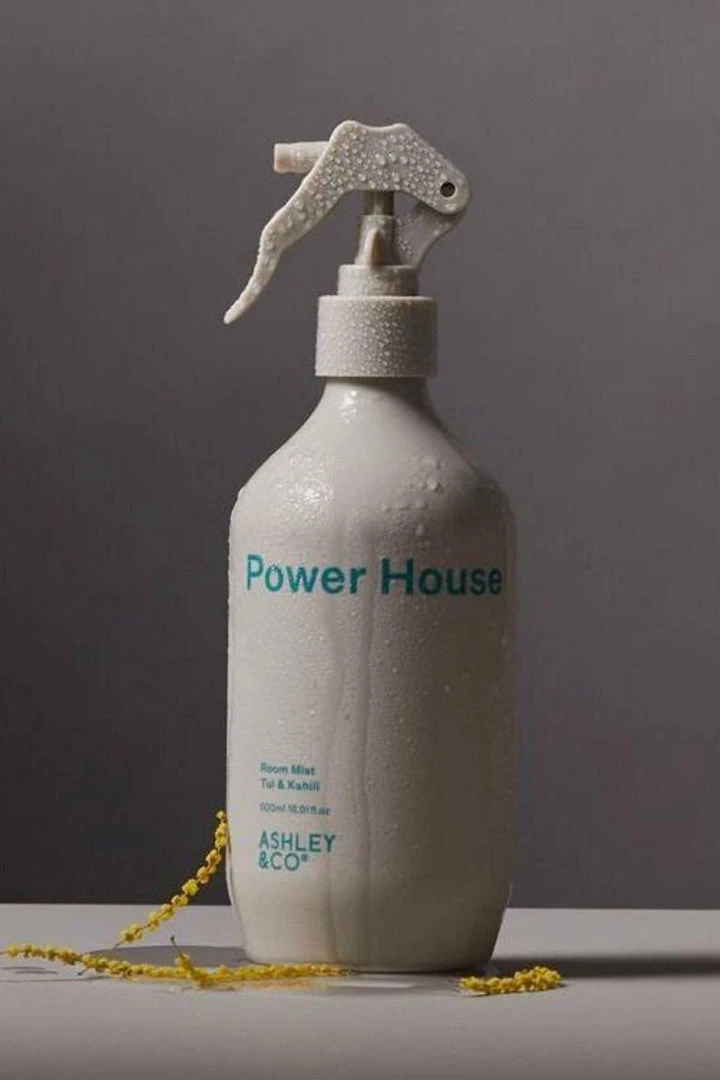 With a tropical overlay of Wild Spreading Ginger and Delicate Lily, the scent also has calming tones from Sandalwood and Ylang Ylang. The combination is heady and alluring. Power House is a room spray like no other. Water-based, its safe to use on fabrics and soft furnishings, even leather. In a fully recyclable 500mls rPET bottle (made from recycled plastic), this product is renowned for being big and bold.Â