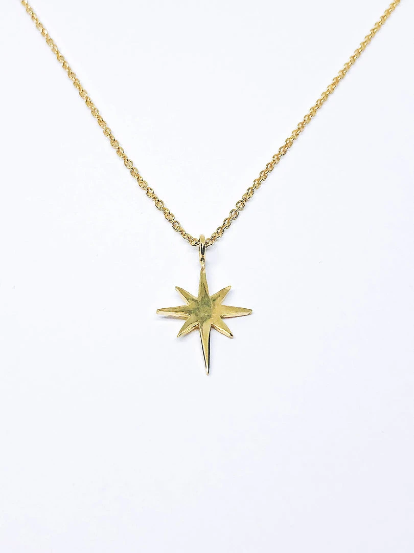 This beautiful sterling silver or 14ct gold plate starburst hangs on a 40cm chain. The starburst measures 2cm.