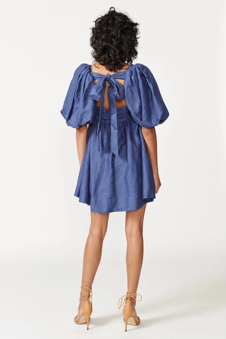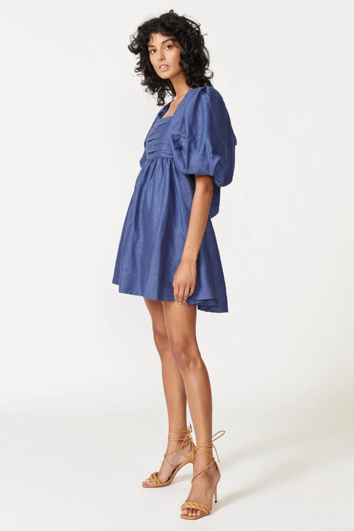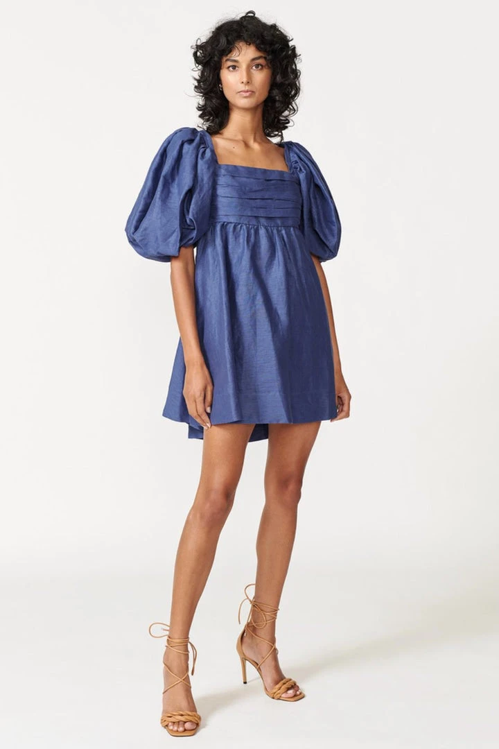 Aureta Lacey Puff Sleeve Midnight Blue Mini Dress