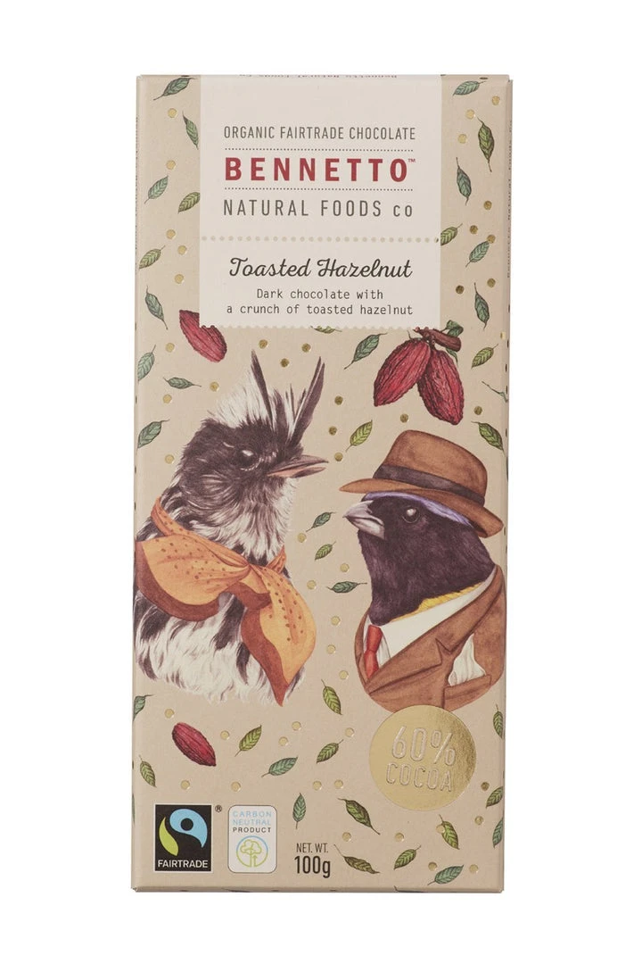 Bennetto Home & Beauty Fairtrade Chocolate Toasted Hazelnut (Stone) 100gm