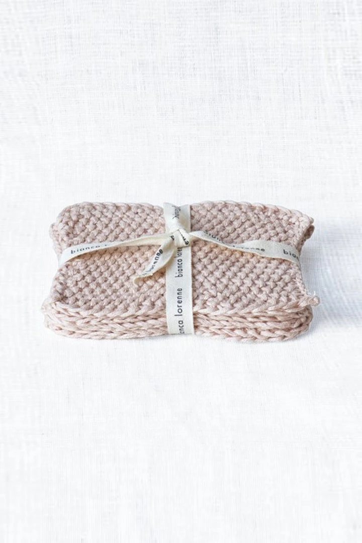 These wonderful reusable and hypoallergenic makeup removers are knitted from the same 100% soft cotton as the Bianca Lorenne washcloths and are the perfect sustainable choice for removing your makeup effectively and gently. Available as a set of 5 in a gorgeous blush colourway that works well with our Lavette petal washcloths and hand towels.