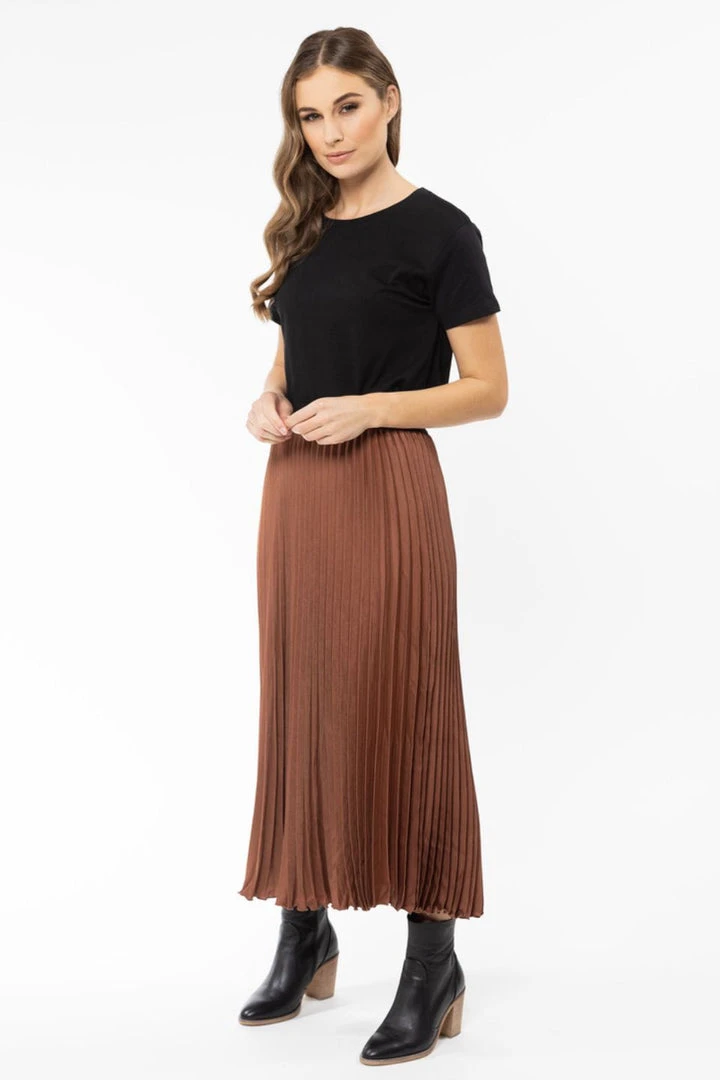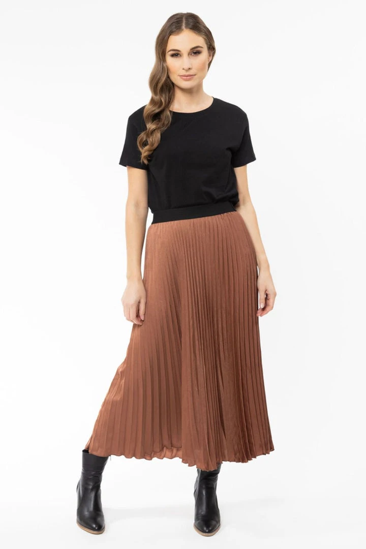 Billie The Label Fashion Sunray Rust Satin Pleated Midi Skirt