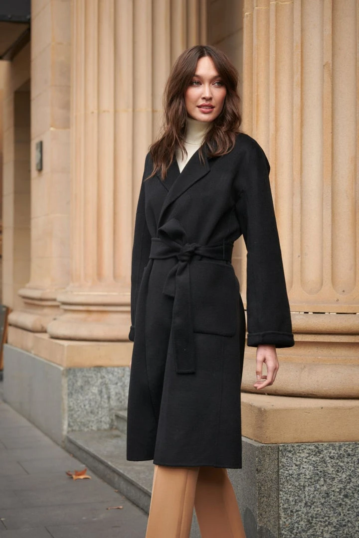 We have gone to great lengths to design the perfect coat that will stand the test of time for you. Bundle up in style with this wrap design, made from double-faced 100% pure soft merino wool. A classic timeless piece that can be worn open or cinched in with its matching waist tie.