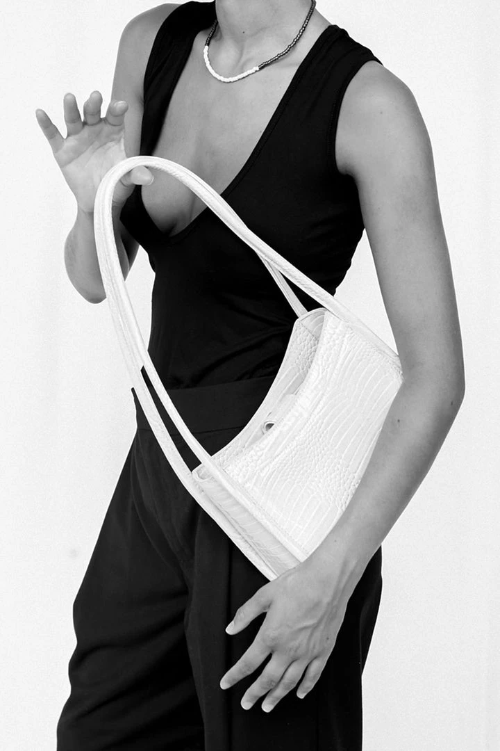 A ’90s inspired medium-sized shoulder bag with sculptural double handles. For an easy transition between day and night, perfect for everyday use.