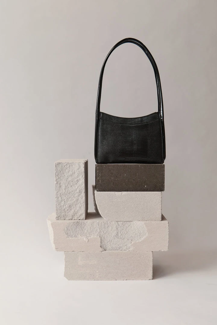 A ’90s inspired medium-sized shoulder bag with sculptural double handles. For an easy transition between day and night, perfect for everyday use.
