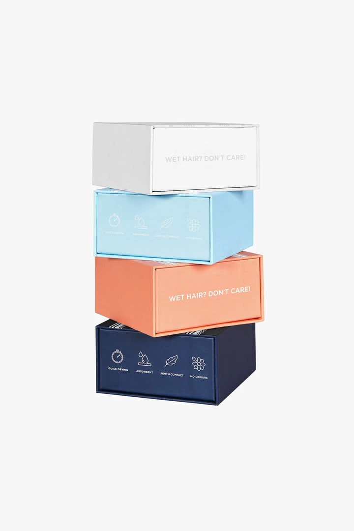 The Ultimate Hair Wrap. Wet hair don’t care! Your self-care saviour. Quick dry material – less time needed to blow dry. Dries your hair in a compact convenient bundle making that morning routine a little easier. Easy to use, simply COVER your wet hair and TWIST the wrap then SECURE into place with the elastic. Light & compact hair turban – make neck pain from bulky towels a thing of the past. Super absorbent – the ultimate hair towel Buh-bye frizz! Our material means less friction for smoother hair Each hair wrap comes individually boxed – the perfect gift! Made from 83% Polyester, 17% Polyamide