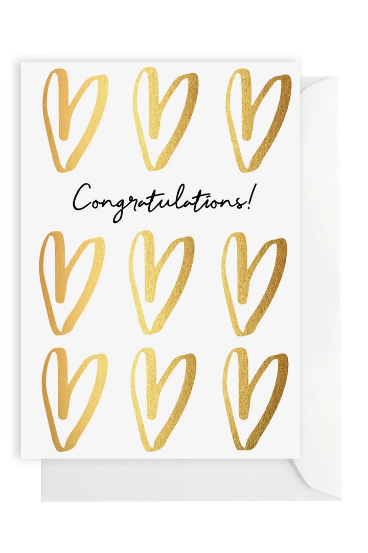 Gold foil stamped on premium uncoated 300gsm card. Folded card with envelope. Blank inside.