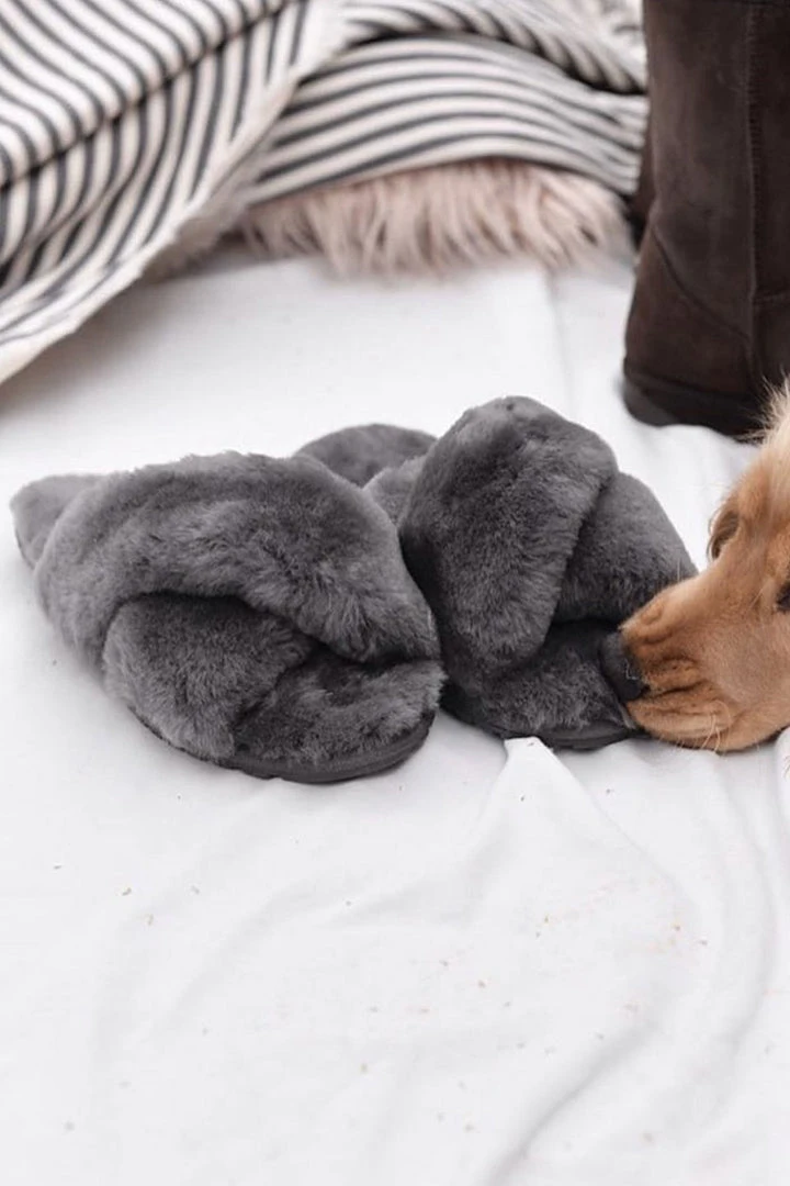 Fluffy and cosy, the Mayberry slider slipper encloses your feet in year-round luxury. Wide crossover straps made with the softest real Australian sheepskin wrap feet in comfort while the lightweight flexible rubber outsole provides traction indoors and out. Ideal for keeping your feet warm around the house.