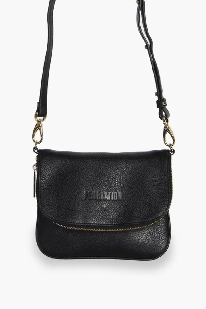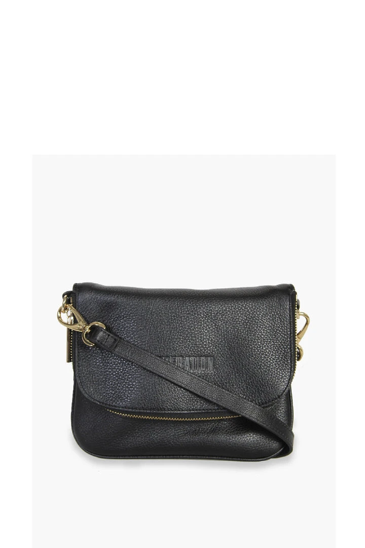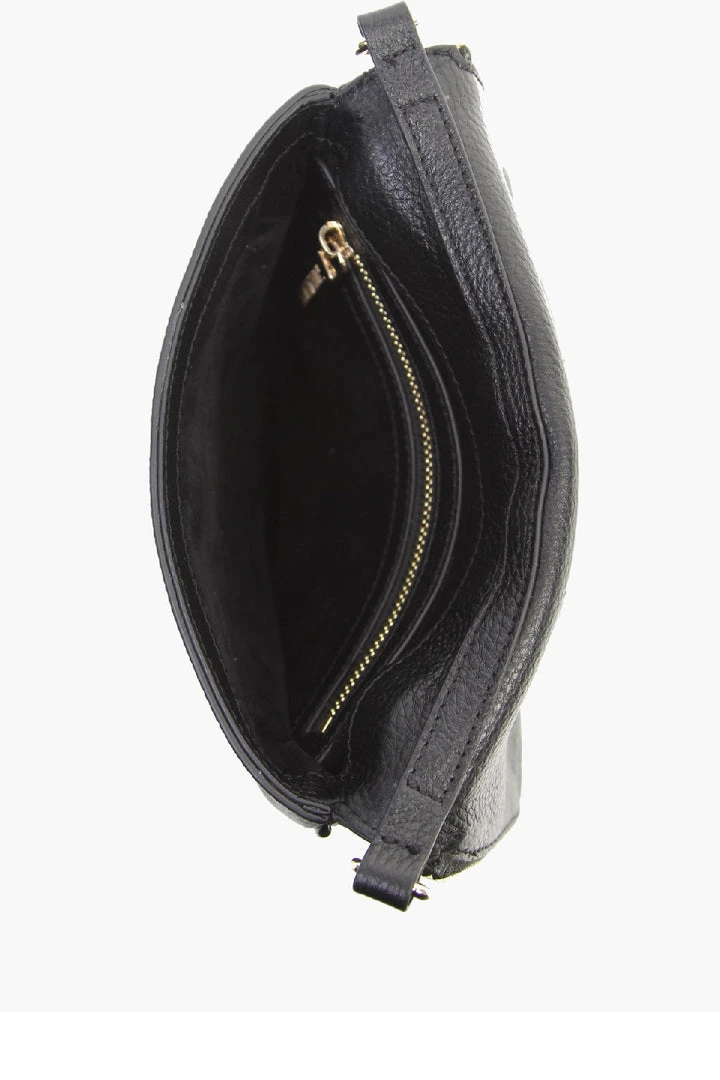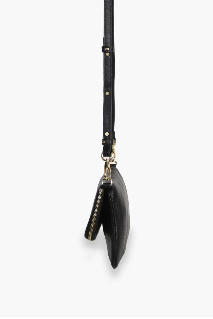 Soft pure leather in just the right size to have all your necessities. Gold zip and hardware detailing and adjustable strap.Â