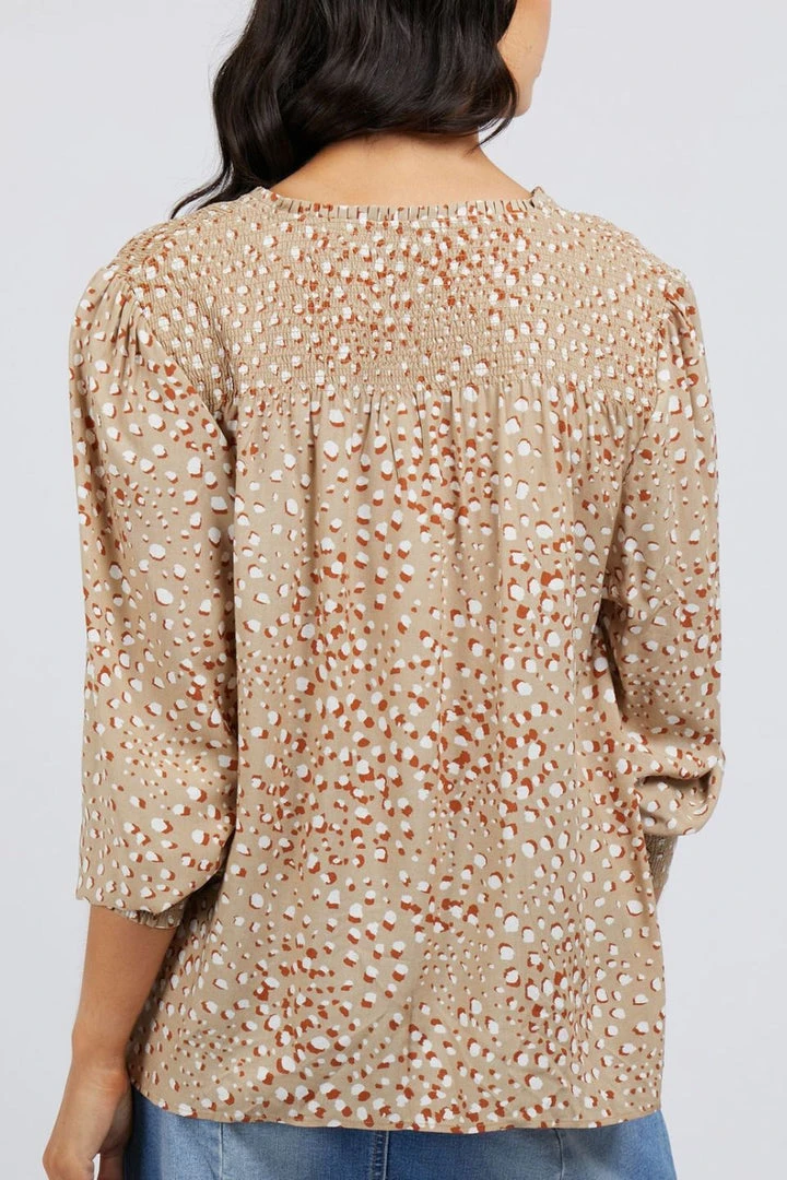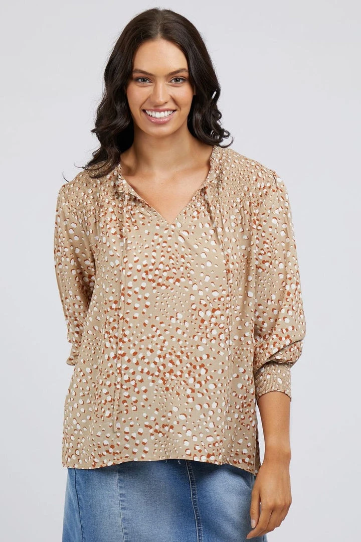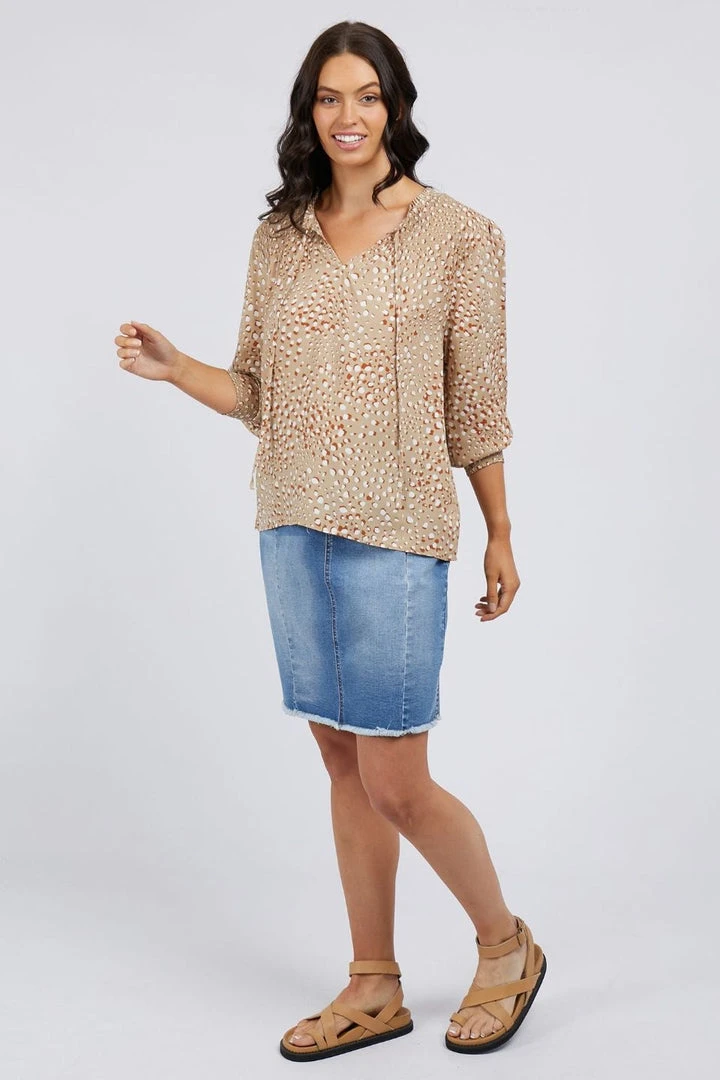 The Kaiya Biege Animal Top is the blouse we all need in our wardrobes! This super relaxed blouse is so easy to wear, pair with your fave jeans or skirt.Â
