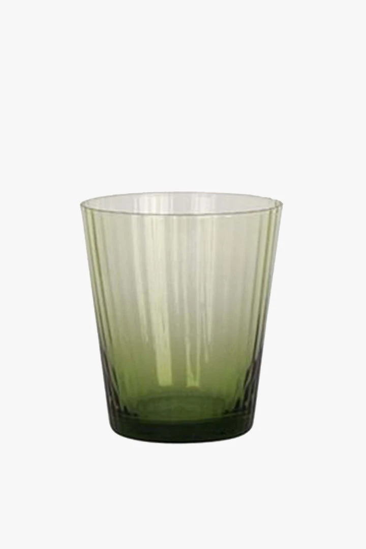 An Elegant ribbed tumbler glass in green by French Country Collections. Perfect to add a splash of colour to your glassware.