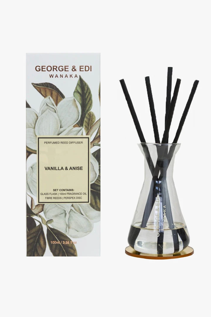 George & Edi reed diffusers enable you to have a beautiful fragrance in the background of your home. They complement our candles and home perfume room sprays. All products are hand-poured in their Wanaka atelier.