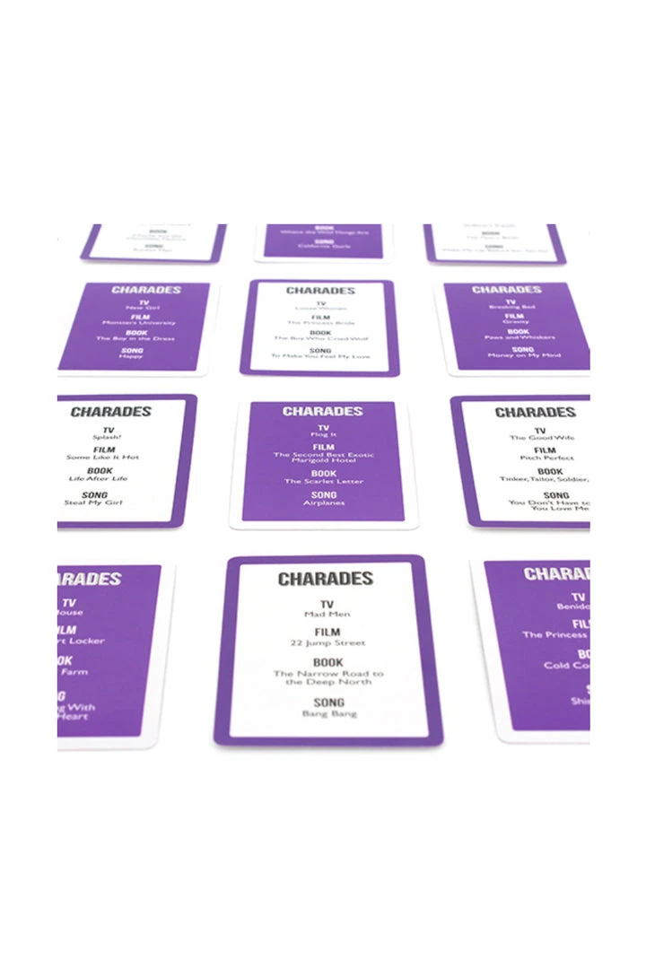 Contents: cards, rules, sand timer, score pad, two pencils, dice.”