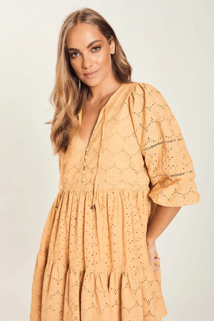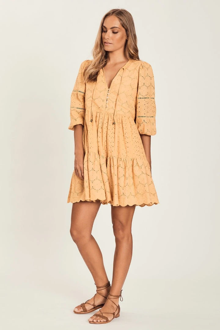 Harni Fashion Rosie Butterscotch Mid Sleeve Lace Mini Dress