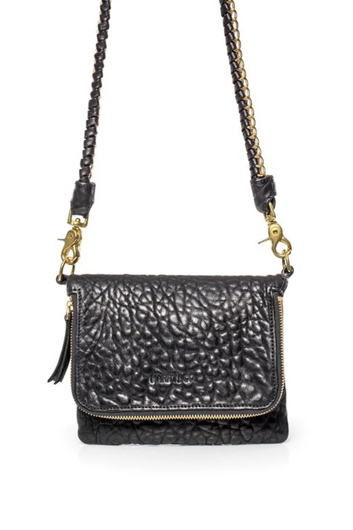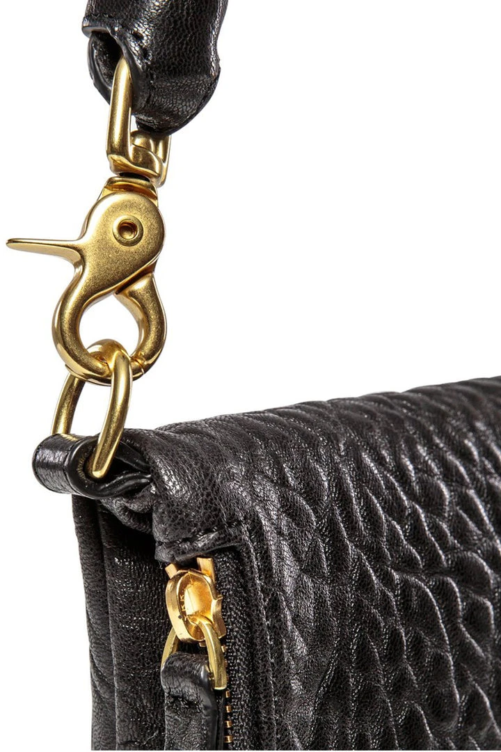 A classic fold-over clutch finished with a zipper closure and an interior offering a separate zippered compartment. Featuring a removable interwoven chain and leather strap. The detachable strap offers over-shoulder or crossbody options. Suede lined interior and solid brass hardware.
