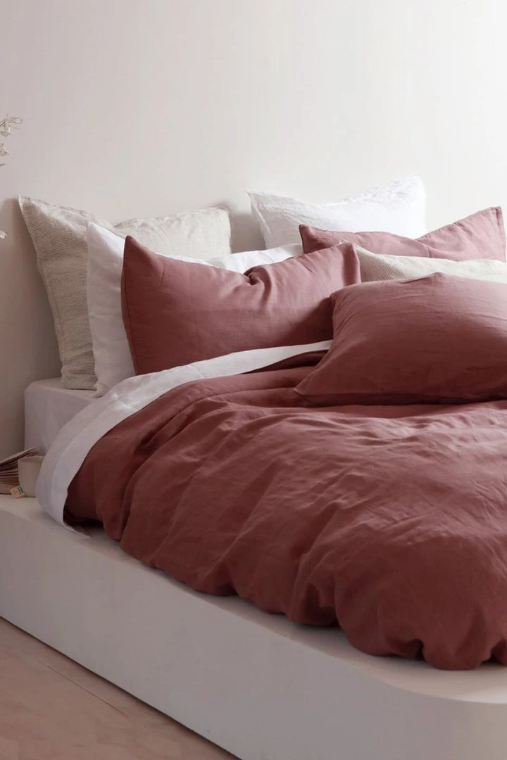 Home Lab 100% French Linen Duvet Cover Set King Chestnut Dusky Rose Cushion, Throws & Linen