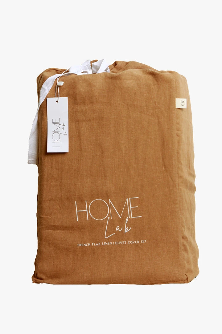 Home Lab 100% French Linen Duvet Cover Set King Ginger