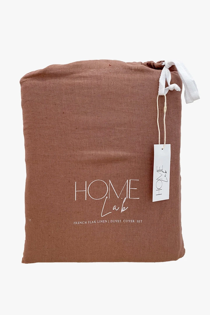 Woven from 100% pure flax linen, Home Lab’s premium linen Duvet Sets are the perfect addition to luxurious bedroom styling and comfort at an affordable price point.