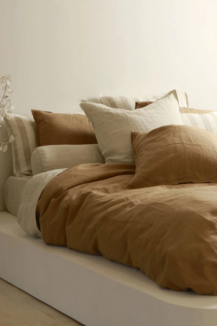 Woven from 100% pure flax linen, Home Lab’s premium linen Duvet Sets are the perfect addition to luxurious bedroom styling and comfort at an affordable price point.