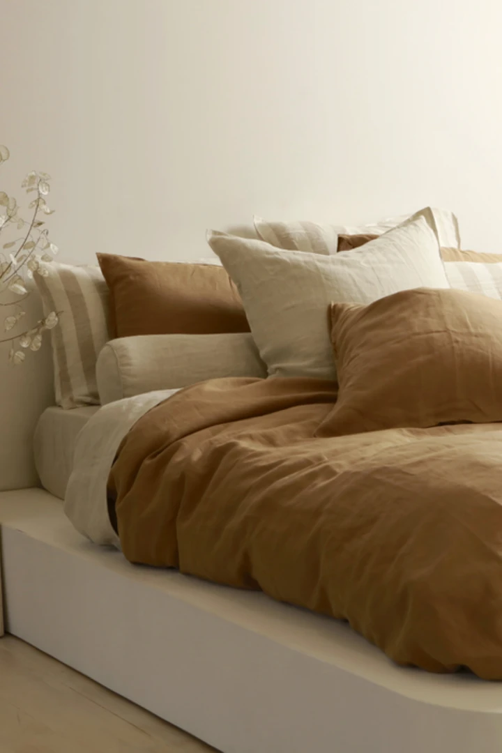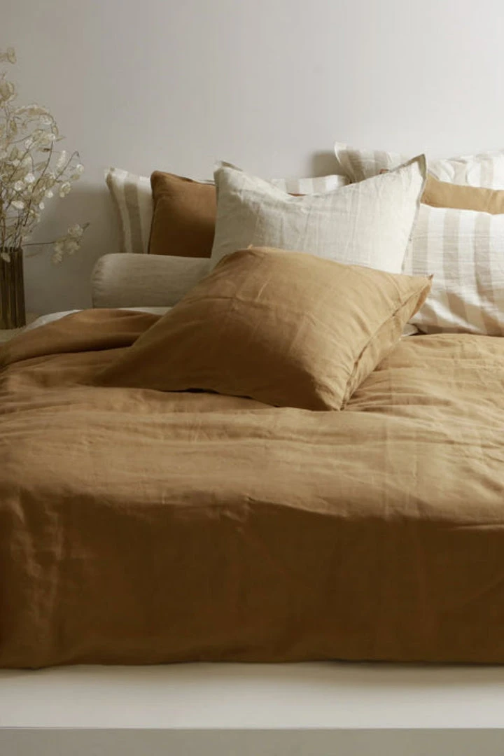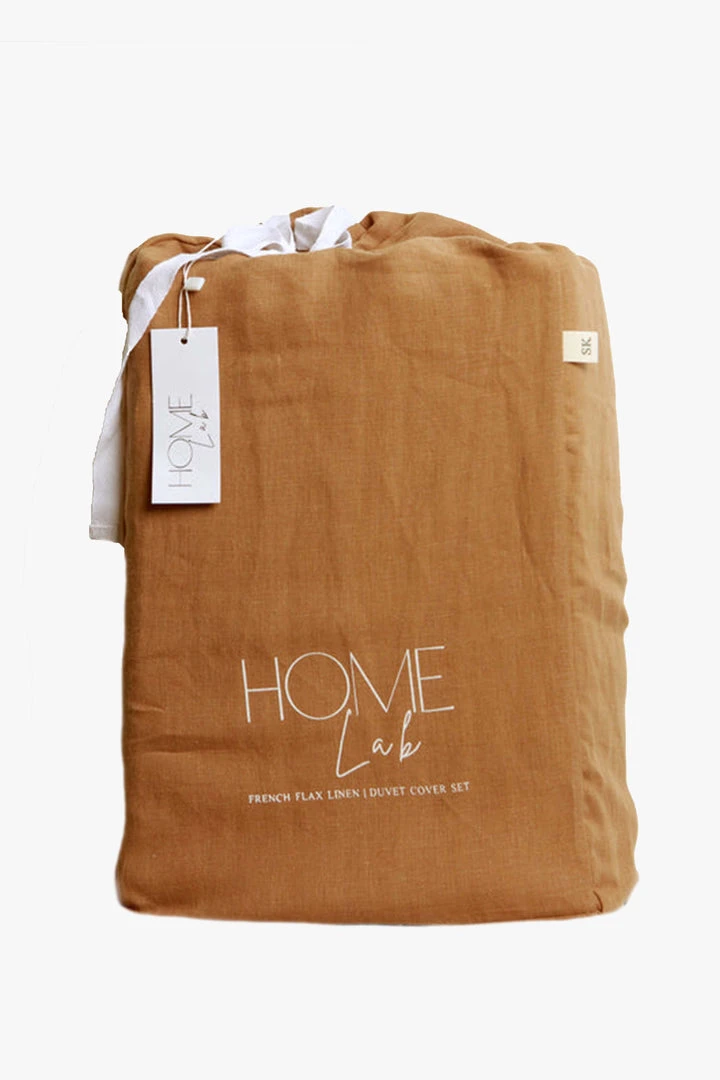 Home Lab 100% French Linen Duvet Cover Set Super King Ginger