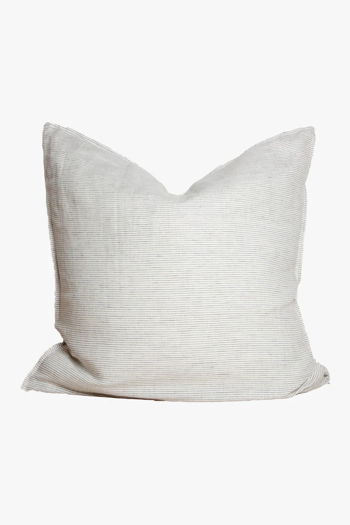 Home Lab 100% French Linen Euro Pillowcase Charcoal Pinstripe 65 X 65cm