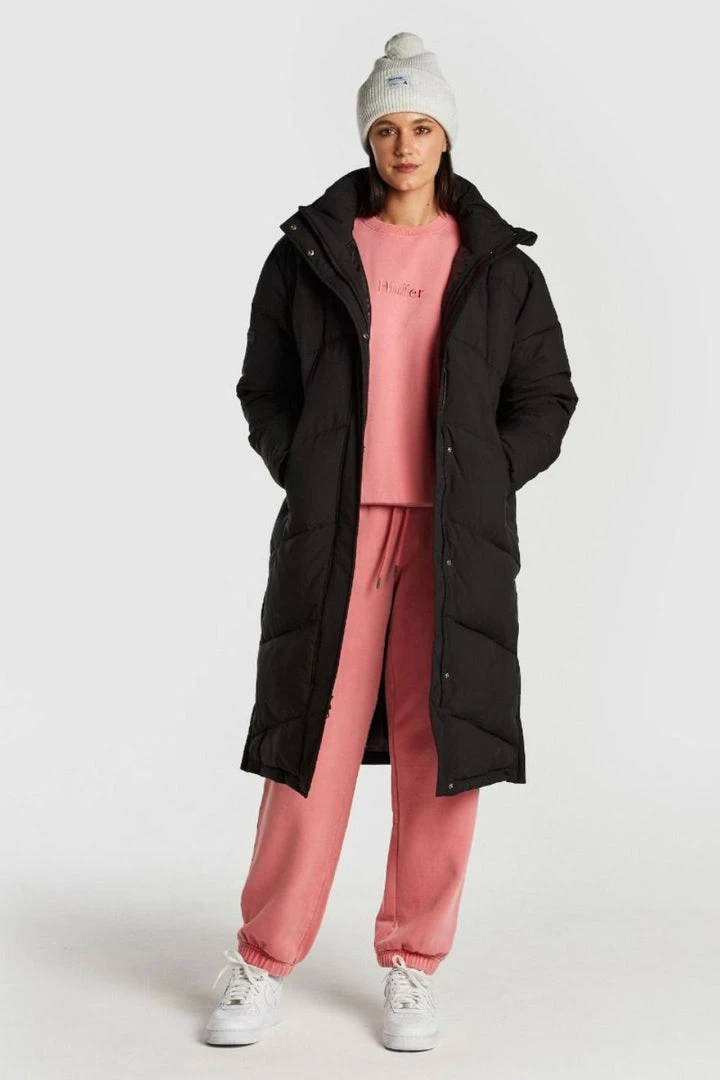 Feel toasty this winter wearing this chic longline puffer jacket from Huffer.