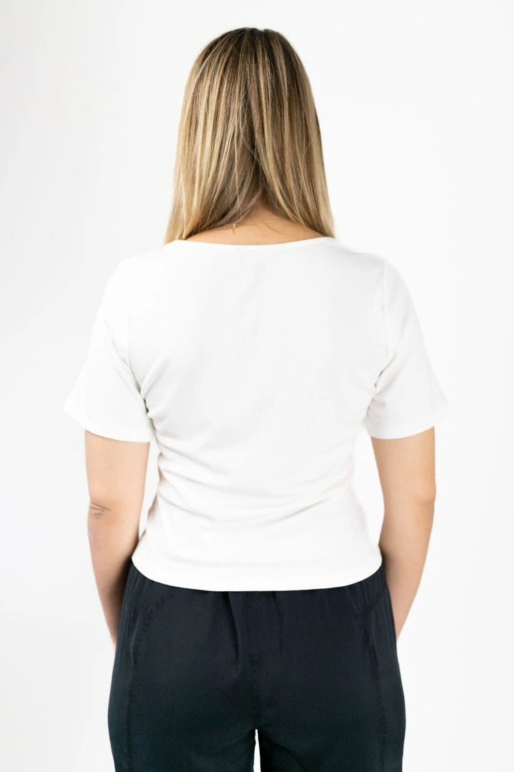 The Roxy Rolled Sleeve White Crop Organic Tee is the perfect staple tee for every wardrobe. With a relaxed shape and rolled cuff sleeve detailing this tee pairs perfectly with blue jeans for a casual look or a statement bottom for a more elevated outfit. Â
