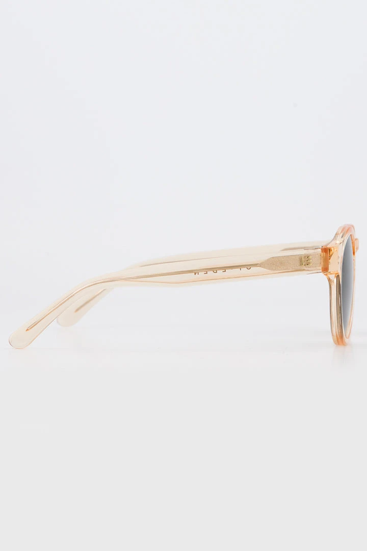 Rounded, smooth, no hard edges. This rounded frame is a classic shape and keeps things simple with a narrow arm that gently curves around the ear for a snug and secure fit. A slightly elevated, wide bridge keeps the frame comfortable on the nose and the focus on the circular shape of the lens.