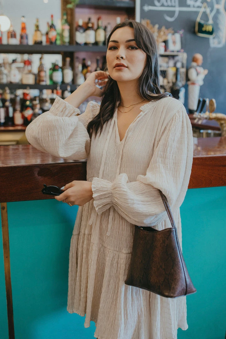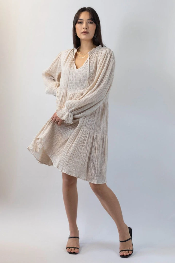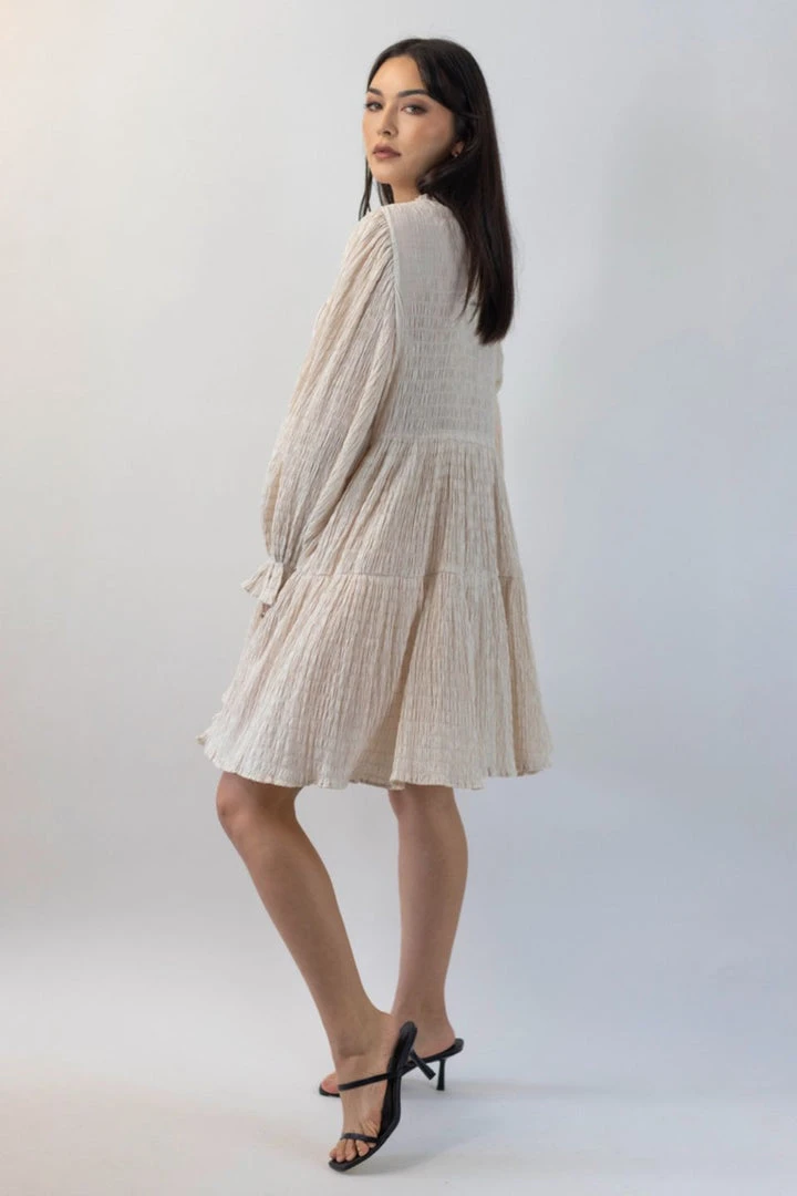 Feel effortlessly stunning at that next party or event in our Billie Dress! This romantic number features floaty long sleeves and a gorgeous V neckline. Pair this mini dress with heeled boots or go for a more casual look with some sneakers.Â
