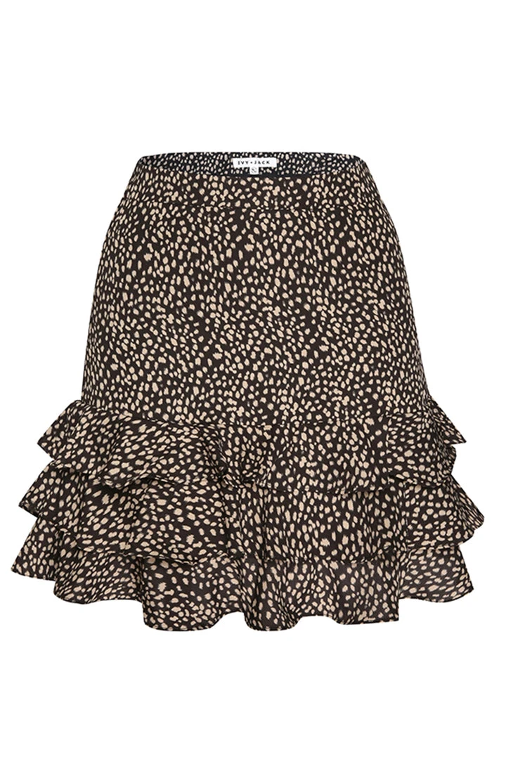 Our Darling Black Mini Leopard Mini Skirt will be your go-to for upcoming summer events and occasions! Featuring a gorgeous leopard print and frill detailing. This mini skirt pairs well with a tee or blouse for a stunning look!