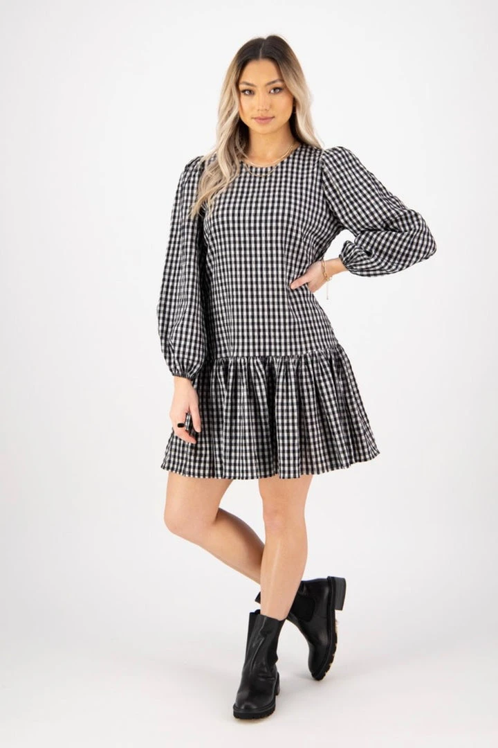 Serve a floral chic look with the Emelia Black Check Smock Dress! This pretty mini features long balloon sleeves witha bow tie cut outs at the back. Its floaty, dreamy and perfect for your next event. Pair this gorgeous number with strappy heels and a blazer for the perfect night out look.