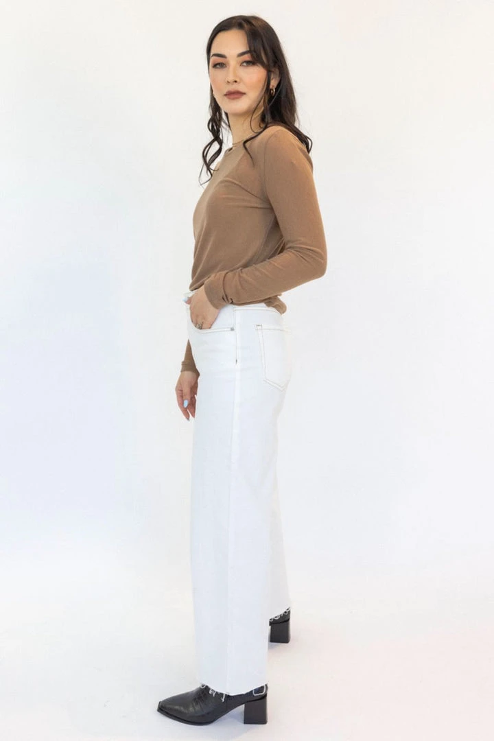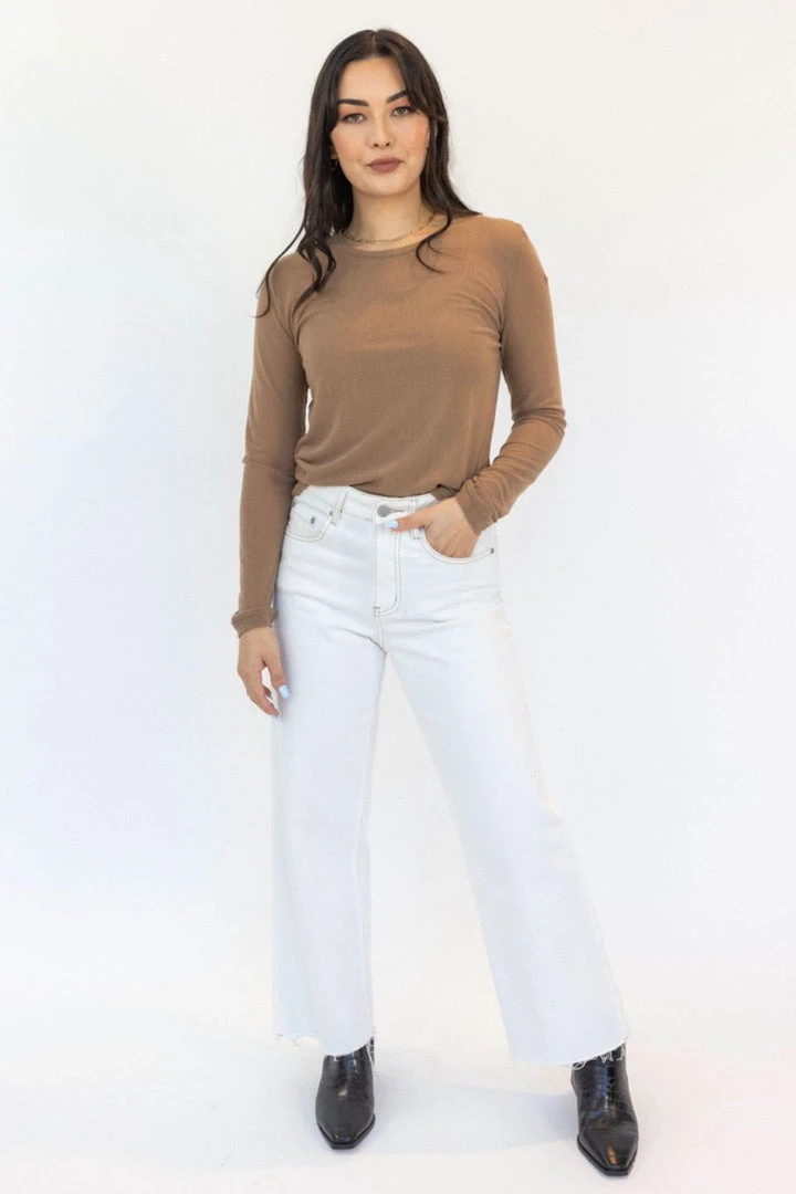 You can’t go wrong with our Faith biscuit mesh crew top! Featuring long sleeves, a high neck and a soft and stretchy relaxed fit. We love this as a go-to layering piece.