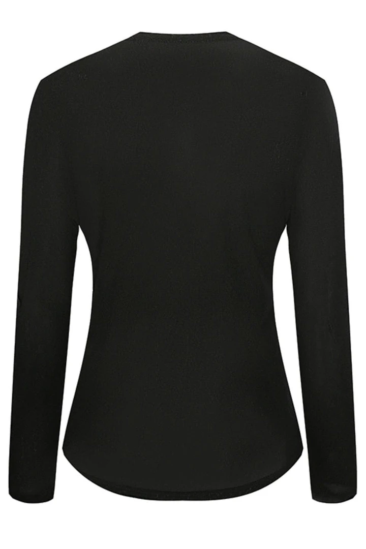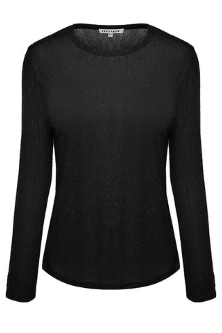 You cant go wrong with our Faith black mesh crew top! Featuring long sleeves, a high neck and a soft and stretchy relaxed fit. We love this as a go-to layering piece.Â