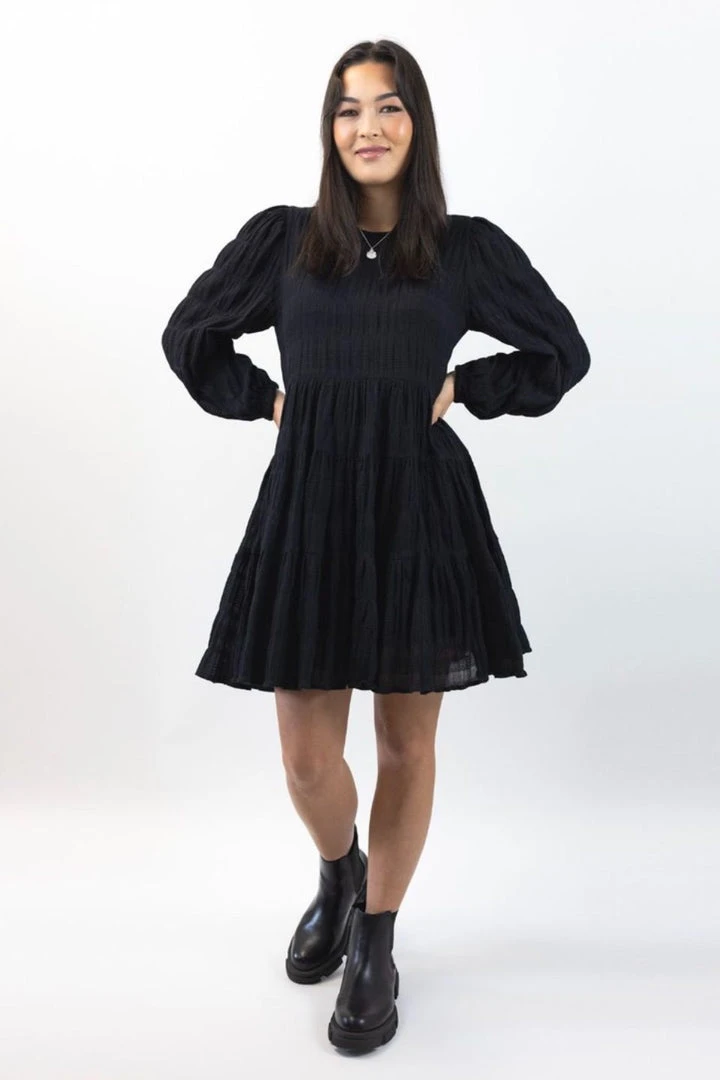 This gorgeous Bella mini dress by Ivy + Jack is the perfect transeasonal dress you need in your wardrobe. This mini features cuffed long sleeves, Shirred tiered skirt and back keyhole clasp. We love to style this dress with sneakers and a blazer or warm it up with some black tights and boots.